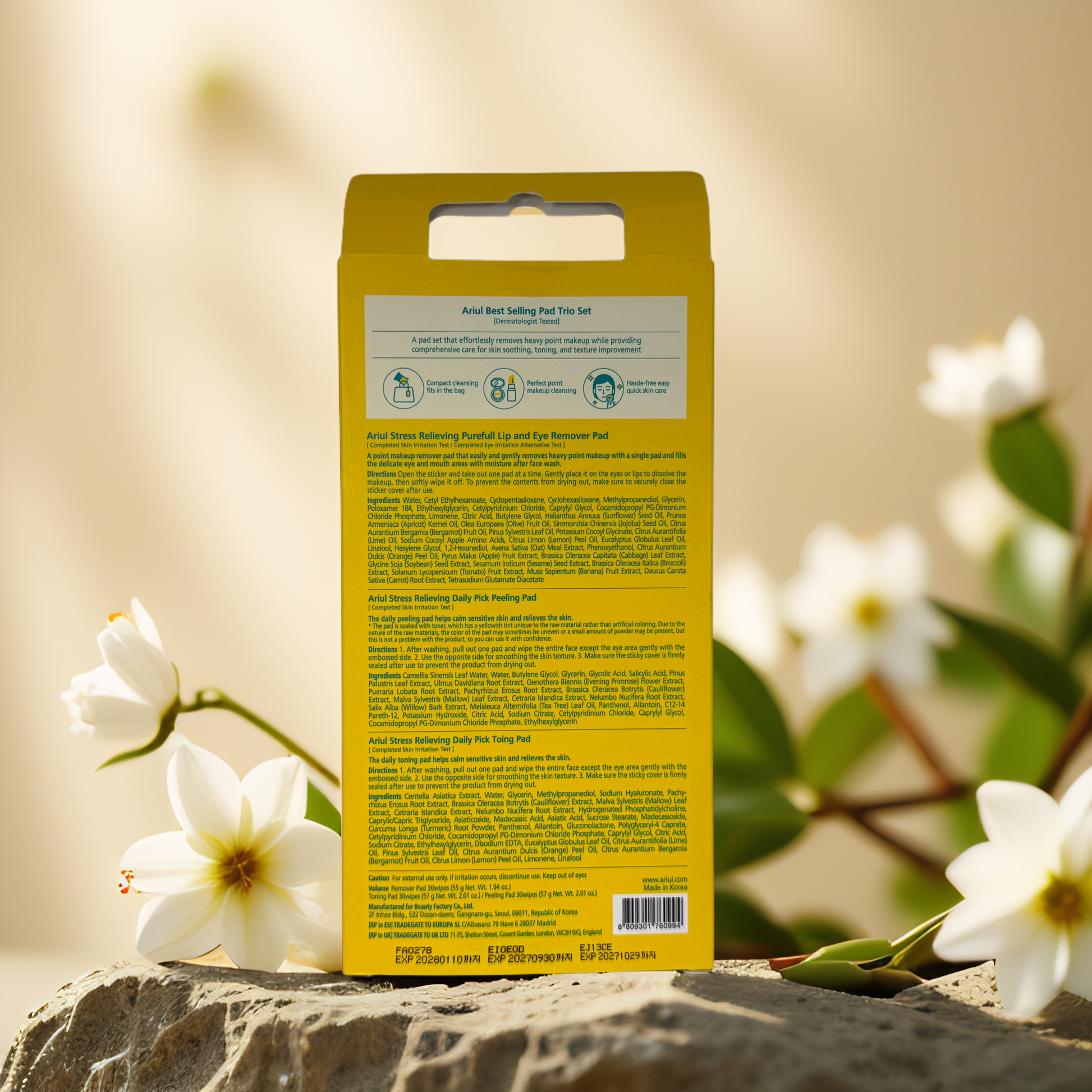 This three-step face pad trio makes daily care simple with targeted pads for makeup removal, gentle exfoliation, and calming hydration. The Lip & Eye Remover Pad sweeps away heavy point makeup, the Peeling Pad smooths uneven texture with light resurfacing care, and the Toning Pad hydrates and comforts the face with a refreshing finish. Each set offers soft, saturated pads that glide easily across the skin, making it a no-fuss ritual for anyone wanting cleaner, clearer, more balanced skin throughout the week.
