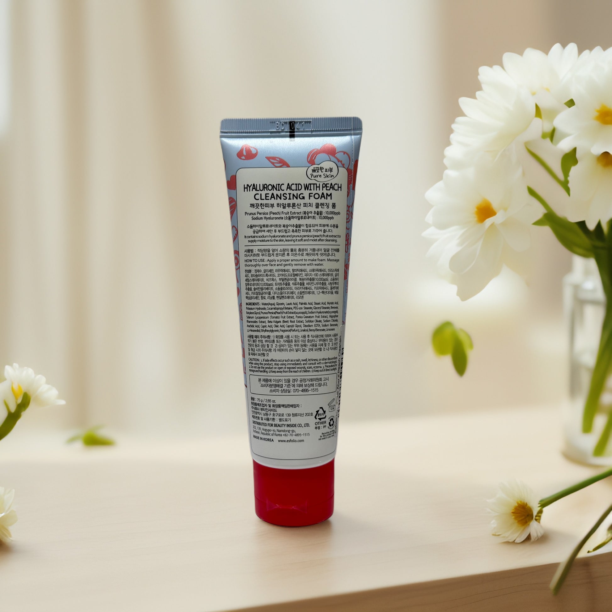 Hyaluronic Acid Peach Cleansing Foam by ésfolio 2.65oz: Gentle Hydration Care
