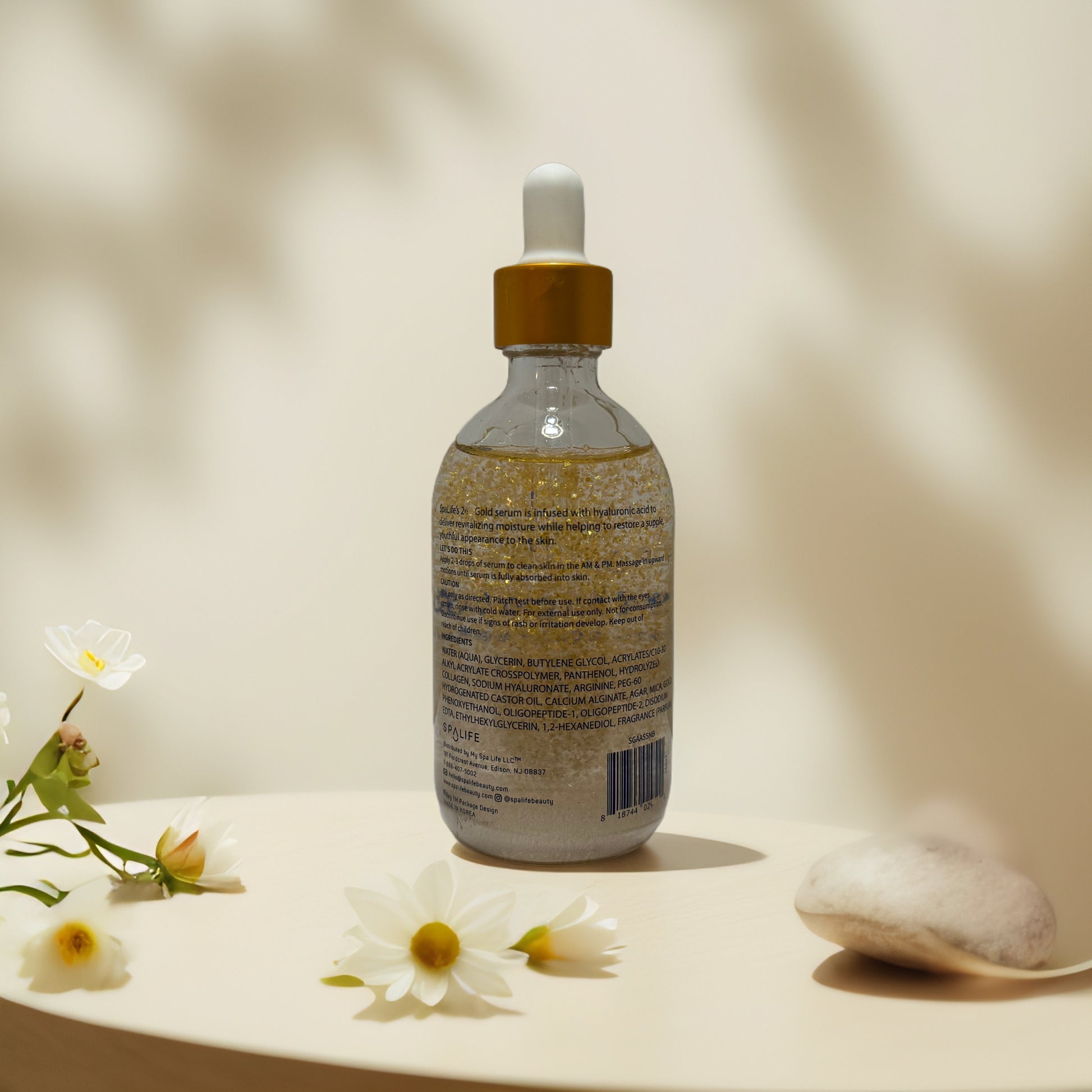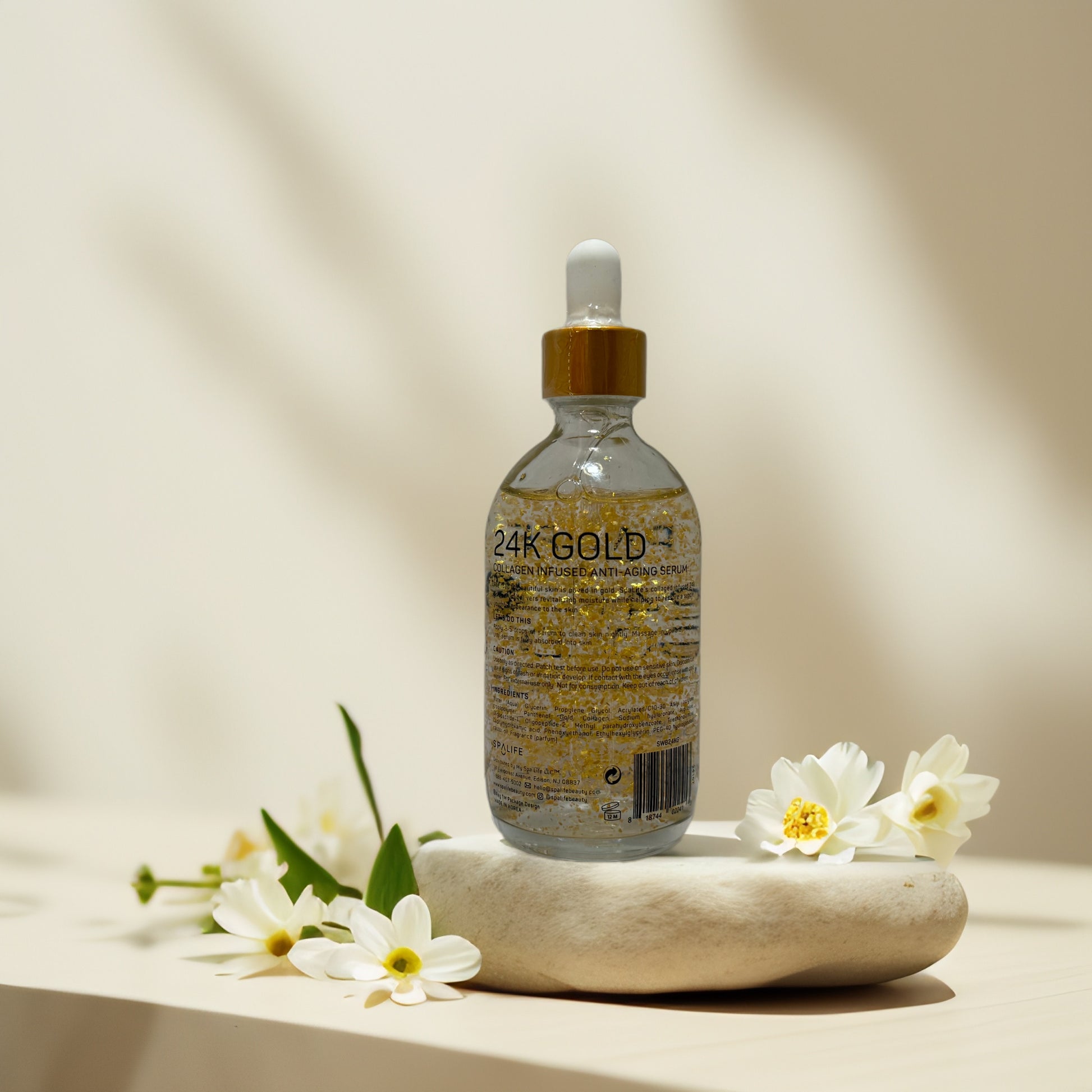 Infused with real 24K gold flakes, this facial serum from SpaLife is designed to elevate your skincare routine with a boost of radiance and collagen support. The lightweight formula features collagen, sodium hyaluronate, and hydrolyzed elastin to help firm the skin, improve texture, and restore youthful glow. Use daily to hydrate, smooth, and sparkle — in the best way.